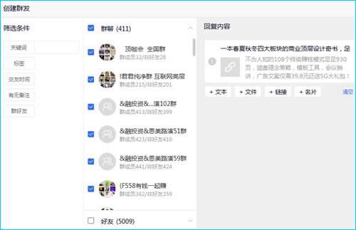 等我群发海报或者内容的时候,把这些好群不选择,也就是避开。但是好群质量高,比你发很多广告群还要顶用。那么我教大家看我是如何在好的群里做的。