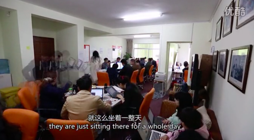 “我们这里谁来的早,谁占工位,谁来的晚,有时候连桌子都没有了,就直接坐沙发上开始工作了,就这么坐着一整天。”
