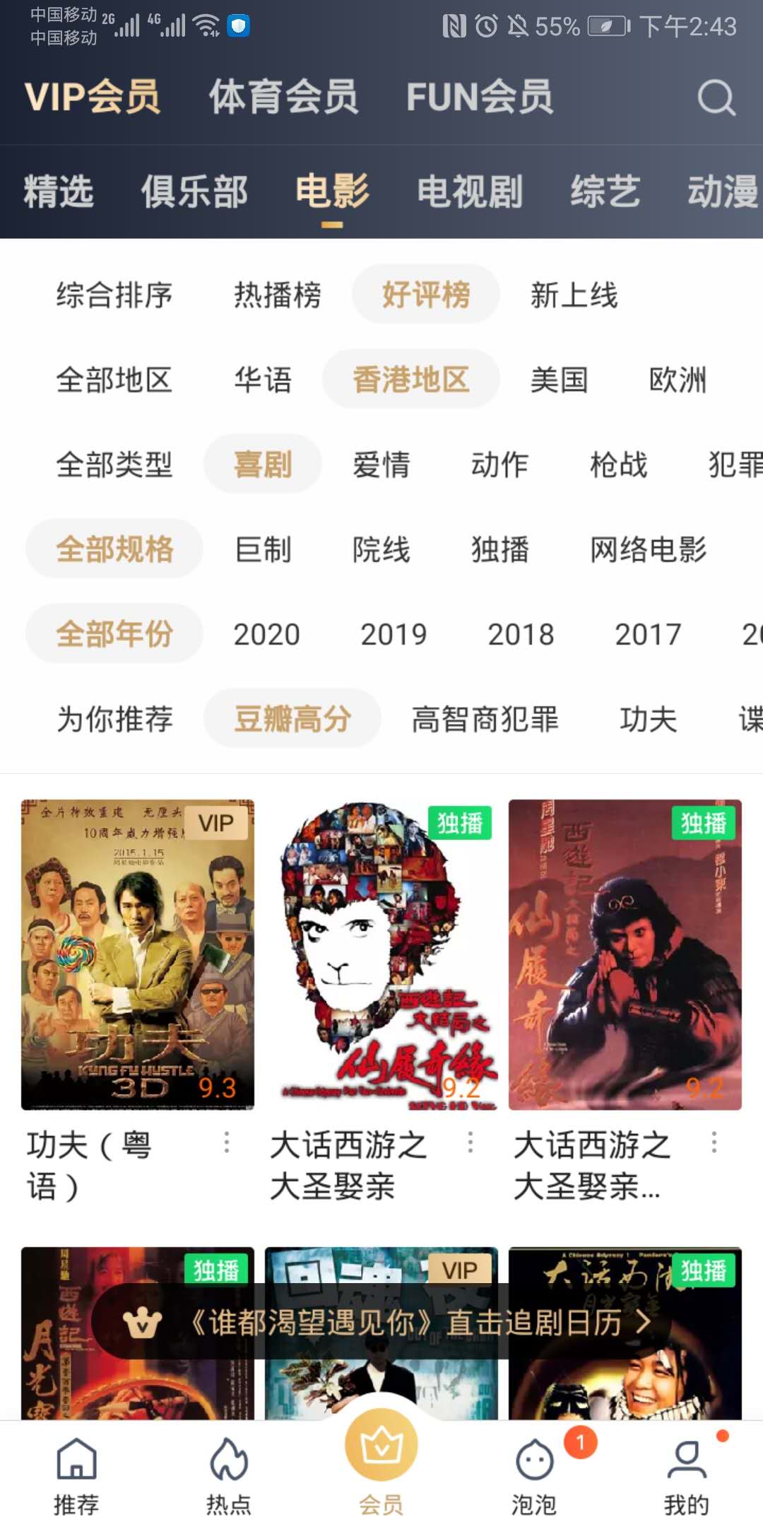视频平台中可以通过设置多个筛选维度可以快速筛选出符合用户需求的视频内容。在爱奇艺中观看电影时用户可以通过设置电影的评分、地区、类型、出品年份等多个维度的条件筛选出指定的电影。缩短用户查找电影的范围,帮助用户快速查找到符合条件的电影。