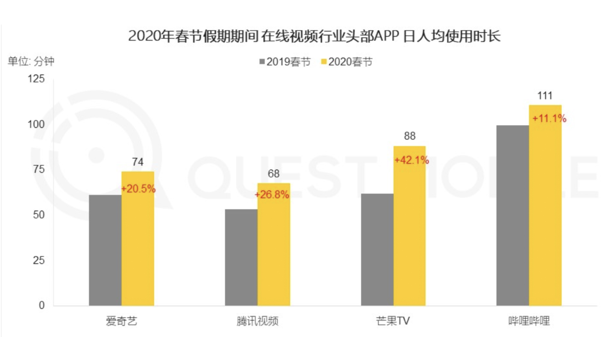 在线视频行业:在线看剧成为很多人宅在家中的放松方式,在线视频行业用户规模较平日上涨17.4%,达到3.1亿人,日人均使用时长超过1.5小时。