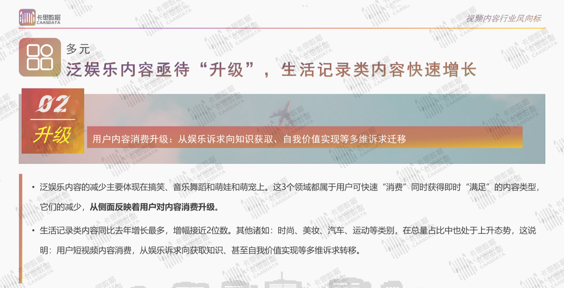 泛娱乐内容仍占主导地位,但同比去年已下滑10%以上(占比总内容体量的6成),降温明显。