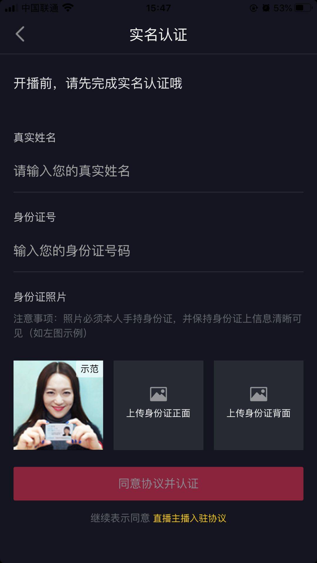 从事网络营销行业的都知道,抖音只要下载了,登录账号了,实名认证了,就可以开直播。(注意:一个身份证只能绑定一个抖音号)