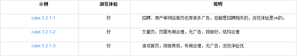下面我们通过举例来感受一下百度搜索引擎是如何对网页的浏览体验进行分类的,站长可以据此对比检验自己站点的浏览体验如何: