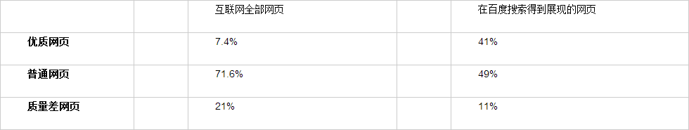 目前互联网上的网页,仅有7%可以达到高质量标准,百度作为最大的中文搜索引擎,希望从互联网生态角度出发,跟站长们一起努力建立良好的互联网生态圈,更好地为网民服务,也让内容优质的网站得到更好的发展。