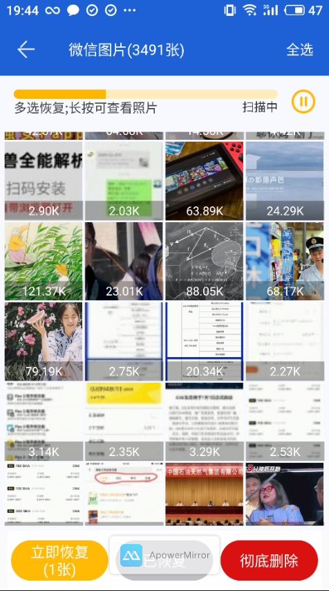 扫描之后会发线有很多平时玩手机多出来的图片缓存,在这个时候就可以把这些没用的图片缓存给删除,然后再选择需要恢复的照片。
