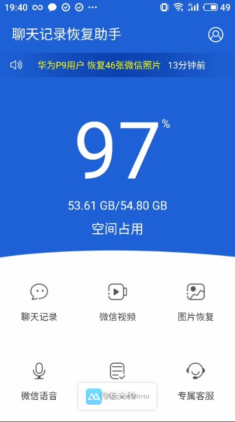支持聊天记录的备份、微信视频、微信语音、文档、图片的专项恢复。
