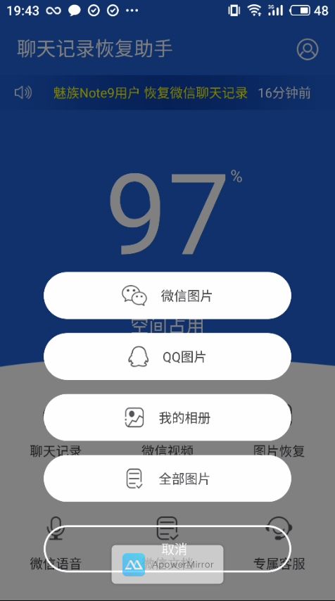 图片栏目支持QQ和微信的恢复,还是比较人性化的。