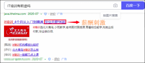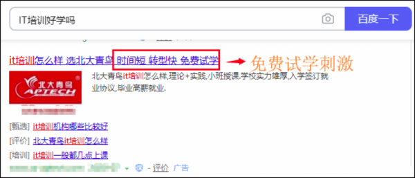 只要我搜索IT类的信息这家公司都会展现给我,并且给予我不同需求的刺激,根据我的搜索词进行回答,让我能在众多广告中快速的看到我最关注的点,这个阶段就是各位SEMer给用户加深需求。