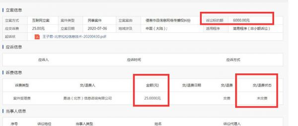 消息一出,在站长圈内,像炸开了锅一样讨论着,纷纷为此件事出谋划策。经过近一个月的折腾,卢松松在昨天发文陈,积极应诉。卢松松公布了应诉诉费信息为25元,而且还没有缴。也就是说,人家花25元,法院就会受理案件,下达传票。想用25元撬动6000元的生意。