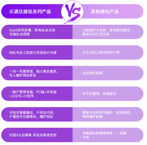 反之,其他建站产品,一方面,“无数据中心支持、单纯网站建站、数据无法汇总沉淀、多平台管理、运维复杂.......”;另一方面,纯展示型网站建设至少900+,而那些具有营销功能的网站动辄就是2w+。