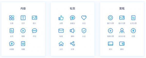 据了解,Discuz! Q是一套跨端全域的社区工具,功能包括: