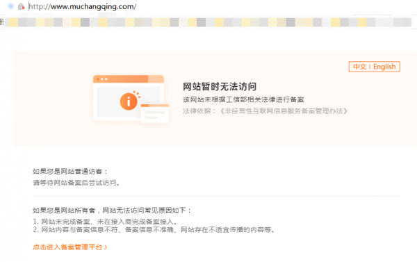 从17年博客停止更新后,近日留意到牟长青个人博客muchangqing.com因为备案问题网站关闭了,暂停访问了!