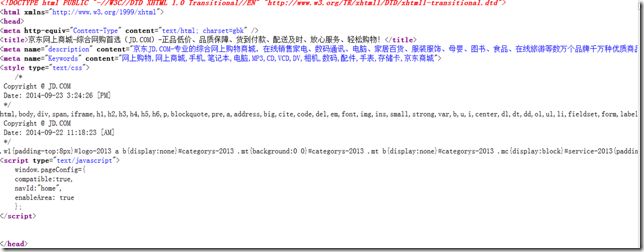 以下是京东商城的HTML简图: css样式放在html前面,并且进行了合并。