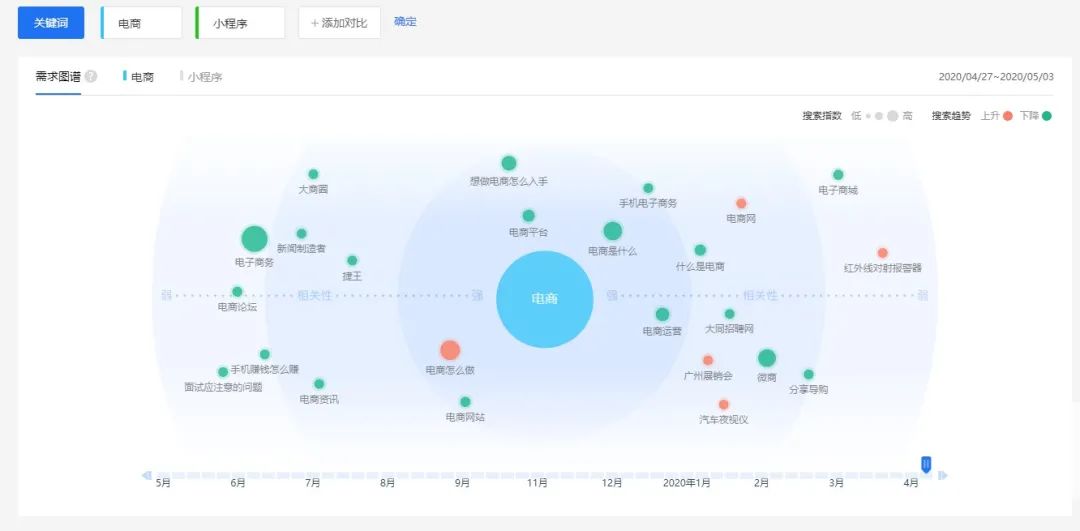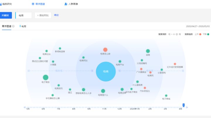 举个例子,关键词【电商】,能够知道一周,30天,还有更长时间跨度的指数。