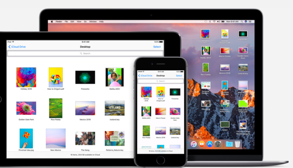 在 Sierra 中,你只需要把重要文件放在桌面上(确实很多人是这样做的),iCloud 上的【桌面】就会自动云存储你的桌面内容,【文稿】中的文件也会自动进行备份。在 Mac、iPhone 和 iPad 的 iCloud Drive、iCloud 网页、PC 的 iCloud app 中, 都能看到【桌面】和【文稿】中的所有文件。