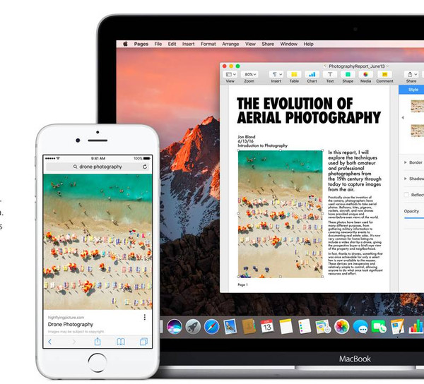通过 Apple Watch 无密解锁 Mac,苹果设备通用的云剪贴板,实时同步桌面的 iCloud Drive ,以及网页版的 Apple Pay,这些功能让苹果的产品之间联系更紧密,未来办公的场景也呈现在面前:通过 Siri 辅助工作,iPhone iPad 资料随时粘贴到 Mac,实时上传到云端的数据让用户不用死守着一个设备,也不用担心意外数据丢失。