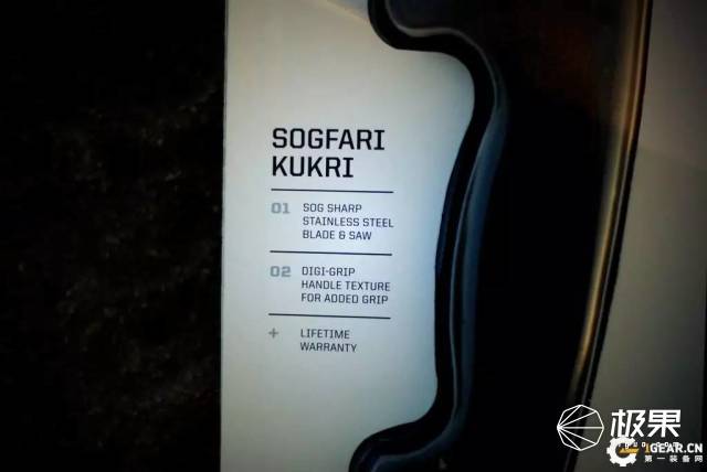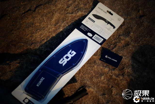 老规矩,先看包装,SOG包装简单而不简陋,硬板纸卡透明塑料壳设计,正面大家刚才已经看到了,是MC11本体,反面装着尼龙刀鞘。