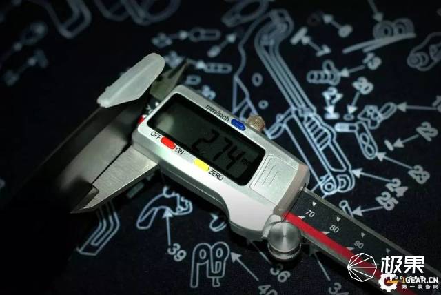 回过头来让大家看看刀背厚度,2.7mm的厚度,远小于大部分格斗刀具。