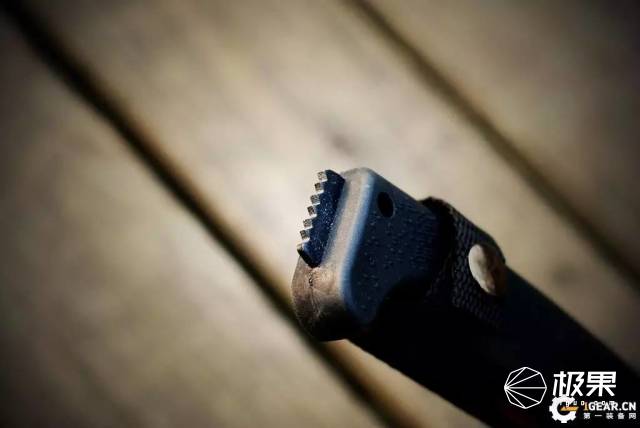 刀柄尾部七齿打击头,完全超越了破窗用途,平时可以直接当锤子锤破硬物。