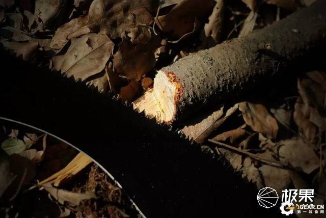 背锯使用起来倒是相对来说更加费力点,4厘米直径松木枝45秒锯断。但背锯本来就是用来对付劈砍困难的粗枝和高密度树枝,开口费力,但开好口后期锯木还是比较省力的。