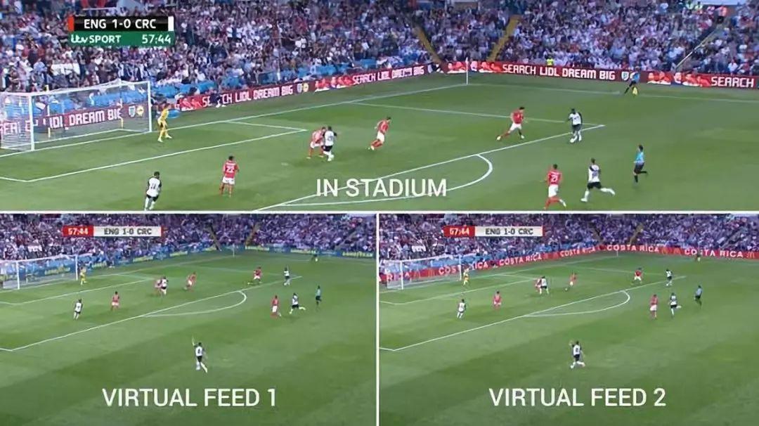 这里要说一嘴,球场周围的广告牌是定向投放的,也就是说,现场球迷、美洲球迷、亚洲球迷看同一场比赛,看到的广告牌可能不同。(这届世界杯没用这个技术)