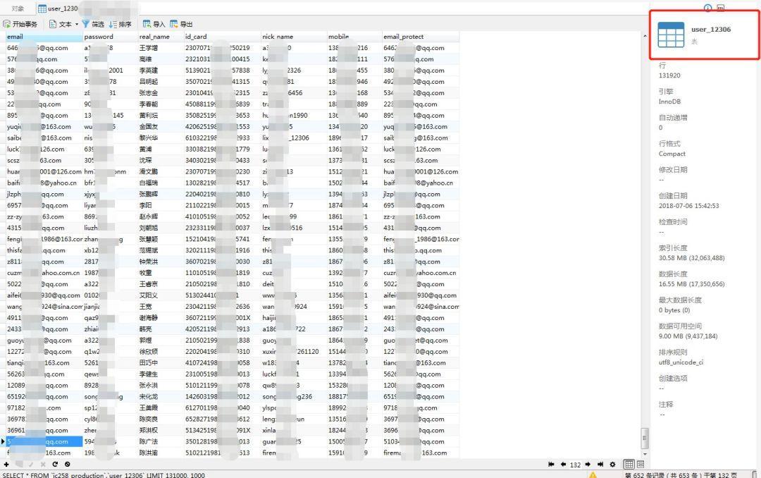 这竟然是一个 12306 网站的泄露数据,里面用户邮箱、真实姓名、手机号、身份证号等一应俱全。