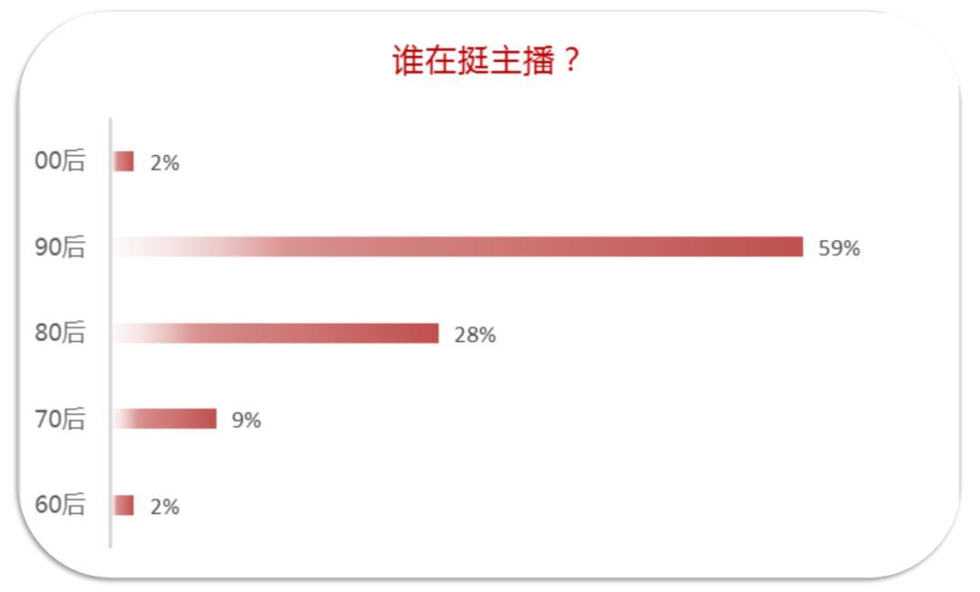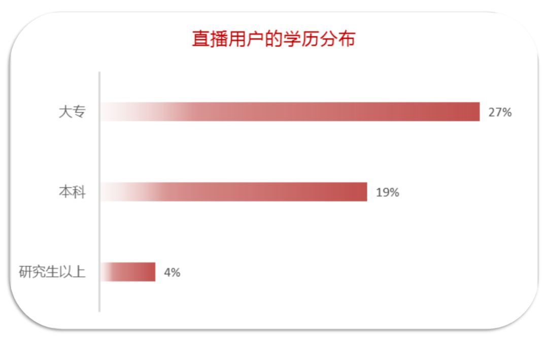 其中,在陌陌用户年龄分布比上,90后占据了59%的比例。大专及以上学历占直播用户半数以上,并有68%的用户曾为主播打赏过。