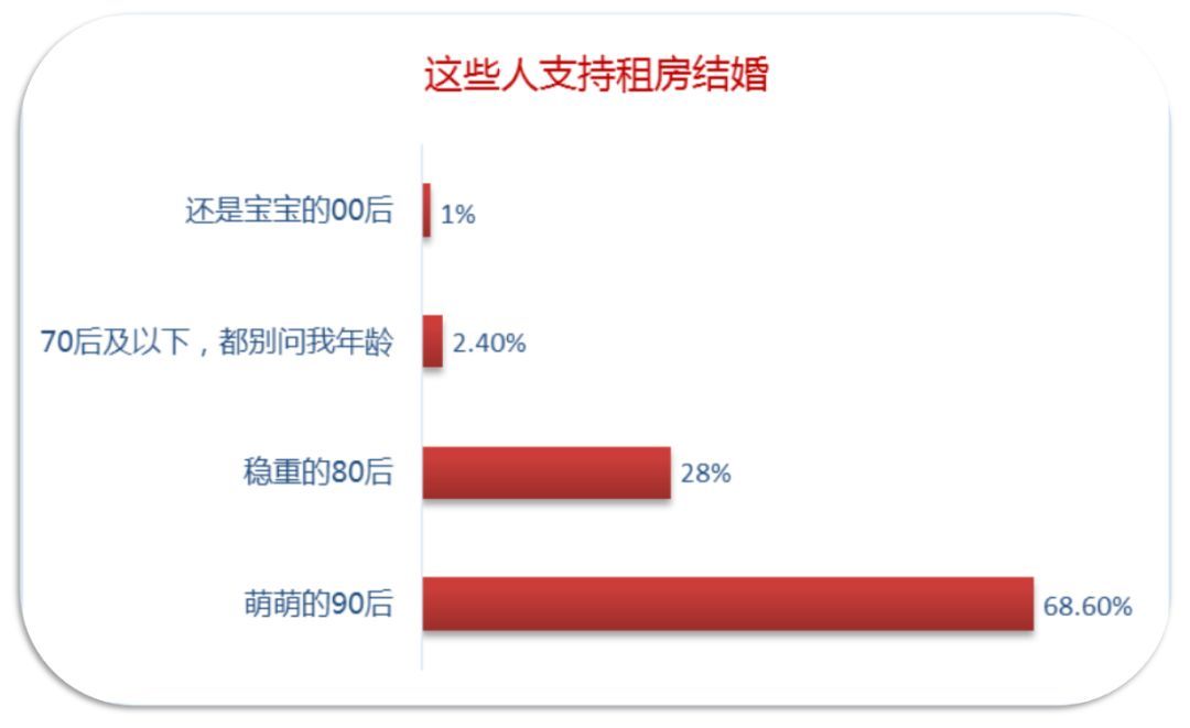 ? 90后对于租房结婚的支持率为68.6%,“婚房观”比80后及80前以及涉世未深的00后们更加开放,有房没房,结婚无妨。