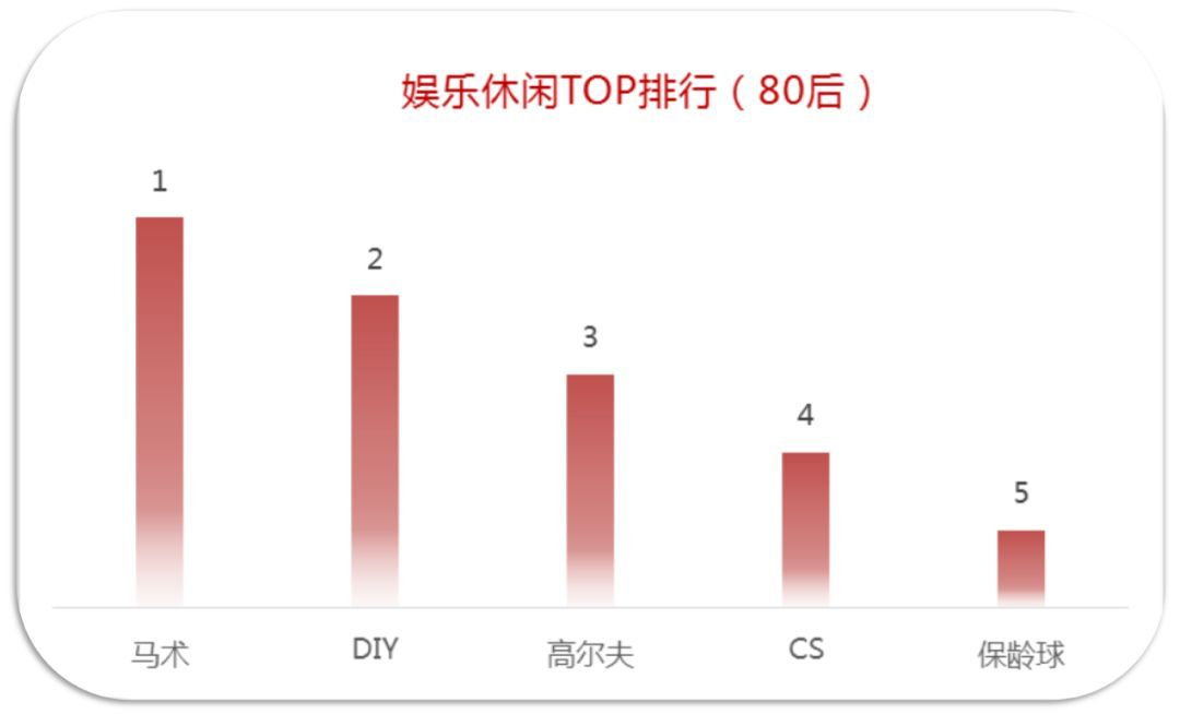 而进入80后所喜爱的休闲活动榜单前三的依次为具有品质和情调的“马术”、“DIY”、“高尔夫”。