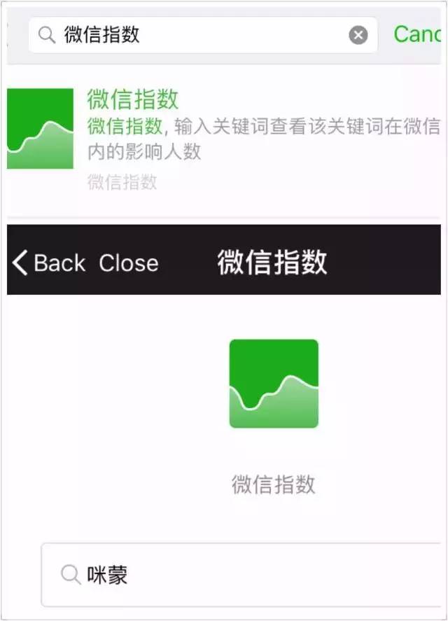 而通过搜索“微信指数”才会查到热度,不专门做其他入口,也照顾了那些“不需搜索”的微信粉丝~
