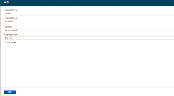 此处选择相应的虚拟网络网关和本地网络网关,并指定共享密钥“SharedKey”。
