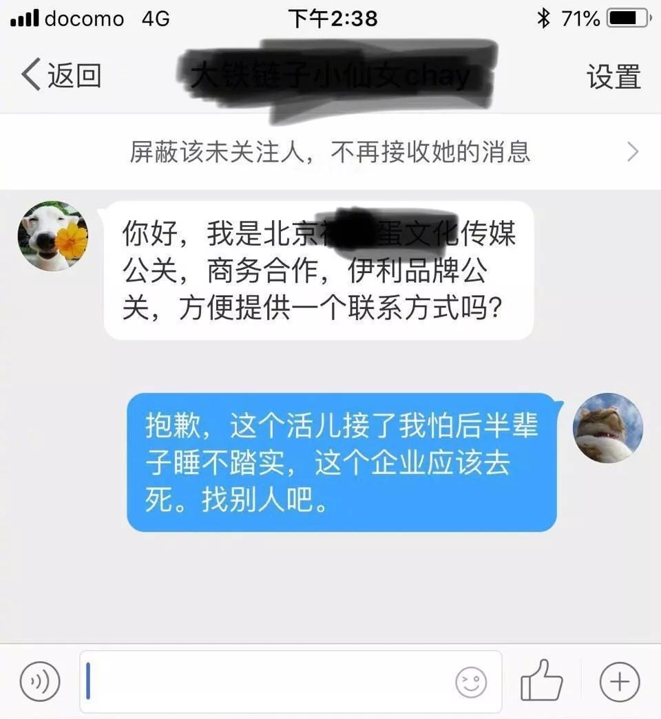 不久后,一位大V把一家公关公司想让他发布上述公关文的交流信息公之于众,舆论继续发酵。没过多久,有的大V将那条微博删除,有的大V在微博中声明已退款并致歉。这件事在网络舆论界闹得沸沸扬扬。