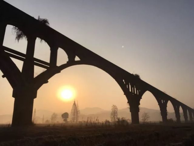 那是村里的一座高架水渠,20 米高。从上面看,脚下是南芬塘村绿油油的稻田。他爬上水渠,在光滑的边缘行走,边走边右手拿着自拍杆,拍着运动。" 这样还是很安全的。" 他后来发微博时颇为自得。