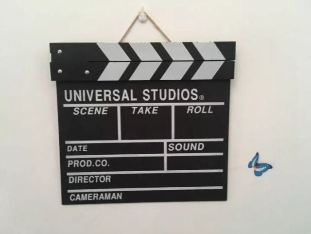 墙上挂着一个拍电影用的开拍板。这与此前他从事多年的职业有关:群众演员。