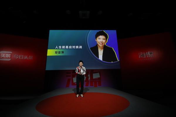 前中国女子乒乓球队运动员、奥运冠军邓亚萍在海绵演讲中讲述了自己从训练、比赛到求学的人生经历,在她看来,人生就是应对挑战。