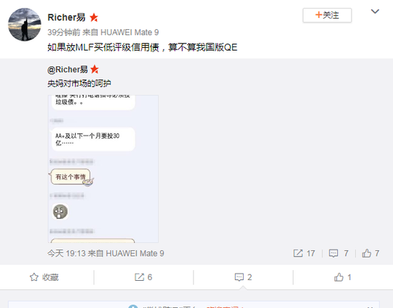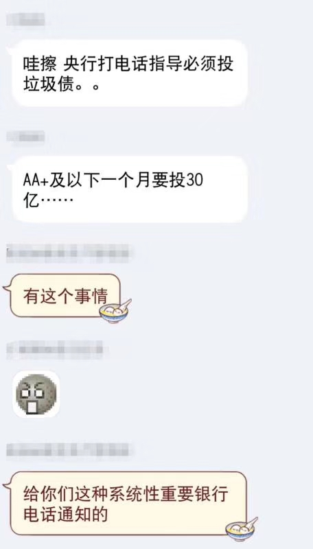 @新浪财经【“央妈”出手?网传央行电话指导银行买“垃圾债”】7月18日,据微博网友爆料,网传央行打电话指导商业银行,必须要投资信用债券,AA+及以下等级债券一个月要投30亿元。