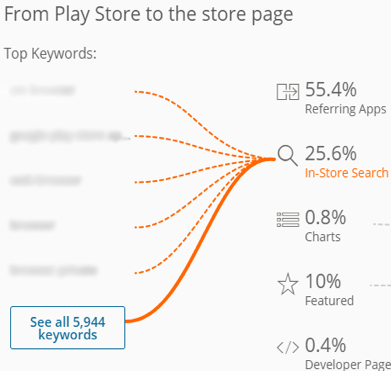 根据Forrester调研,有63%的用户寻找APP的时候是通过在应用市场搜索,另外,Google Play也有报道称80%的自然流量来自于Google Play的搜索。