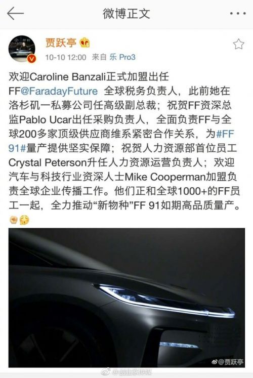 7、贾跃亭公布法拉第未来多项人事任命 4位新高管上任