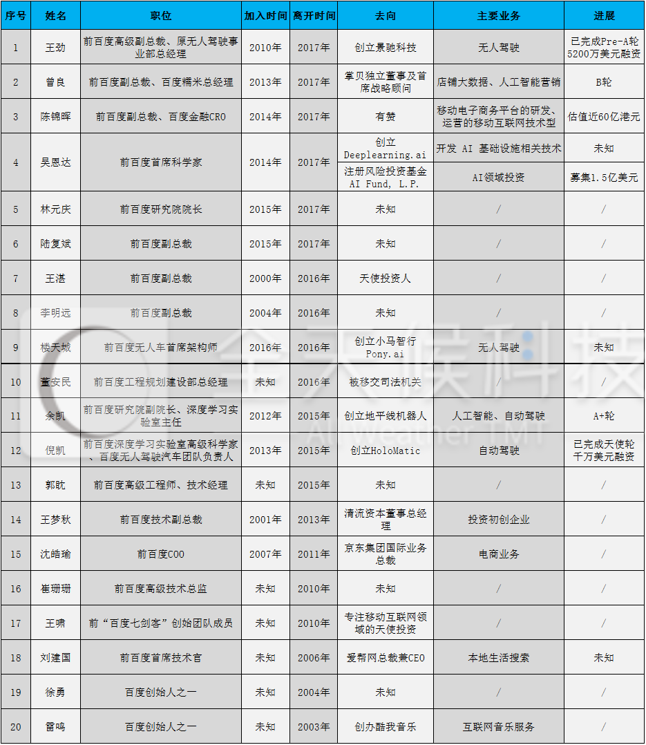 下图为全天候科技整理的百度近年离职的部分高管名单:
