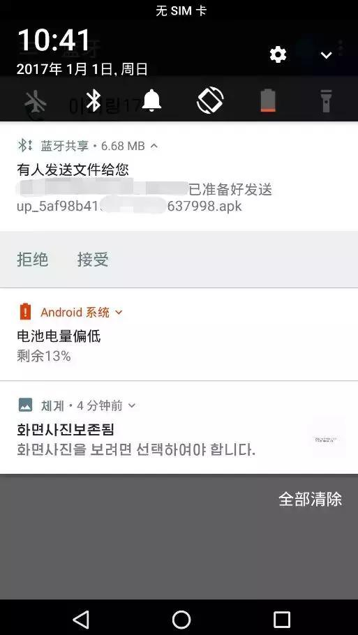 差评君把玩这手机时,想到录屏分享给差友们一些操作过程,于是想办法从别的安卓手机上用蓝牙传一个安装包。