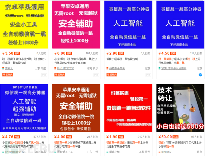 万能的某宝也出现大批的AI辅助或者代上分,各大搜索引擎也出现各种“跳一跳辅助”等关键词的搜索。一度造成了一下这种“我的排行榜”和“别人家排行榜”的差距。