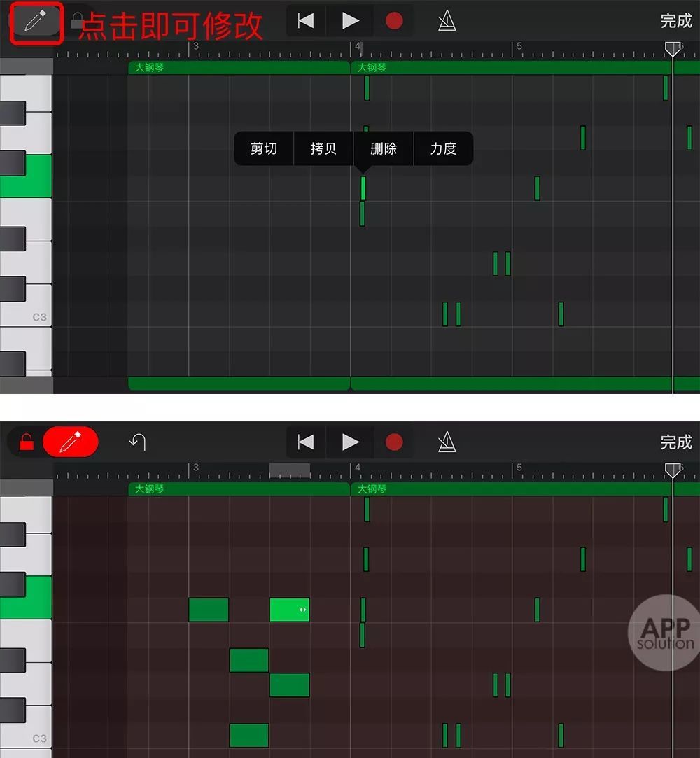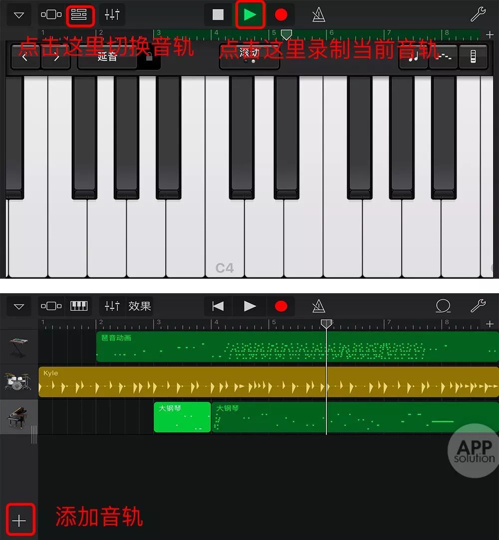 如果有人觉得现成的曲子不能满足它的创作欲,那么他也可以直接用《库乐队》自己制作音乐。