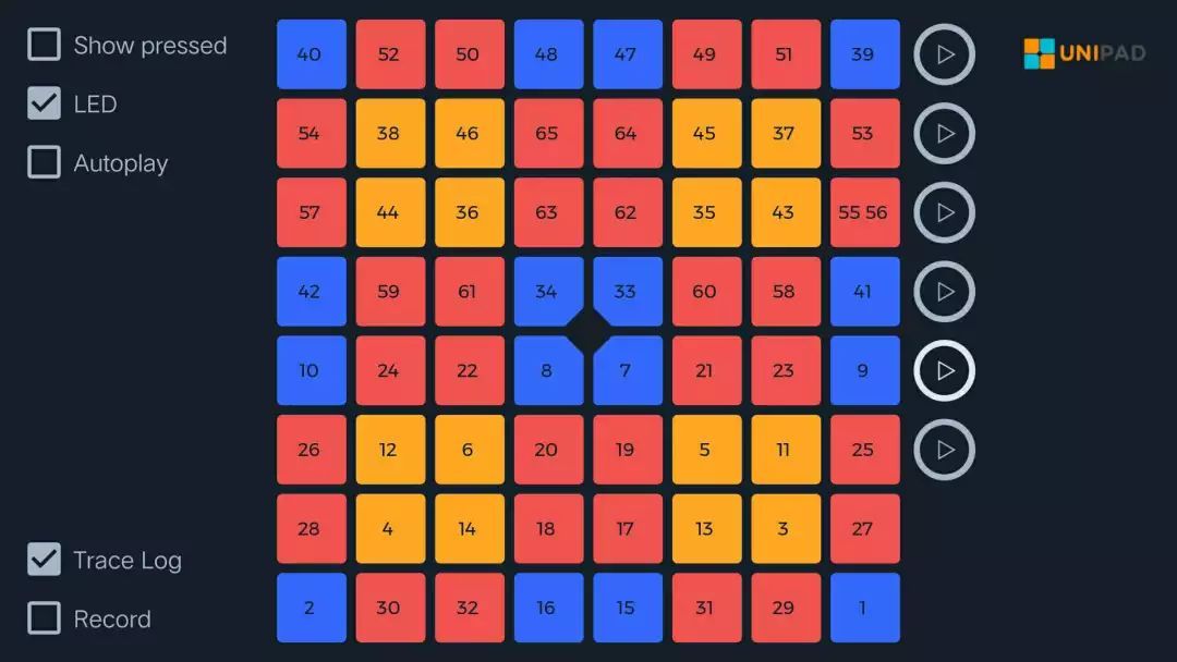 UniPad 则是 Android 手机上一款能够让你快速弹奏 的 app。不仅还原了Launchpad 的弹奏方法,还模拟了灯光等效果,一定程度上满足了不想买乐器又想试试它的人,比如我。