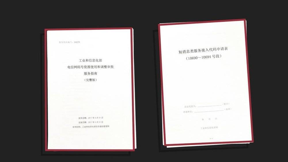 我们找到了 2017 年工信部发布的《电信网码号资源审批指南》和《短消息类服务接入代码申请表》,这两份文件可以告诉我们如何申请 1069 号段的码号。