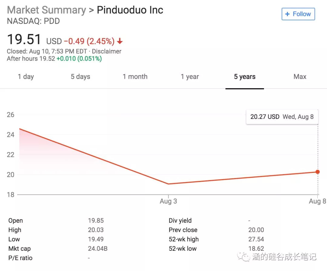 直到今天,拼多多股价依然低于开盘价26.5美元。