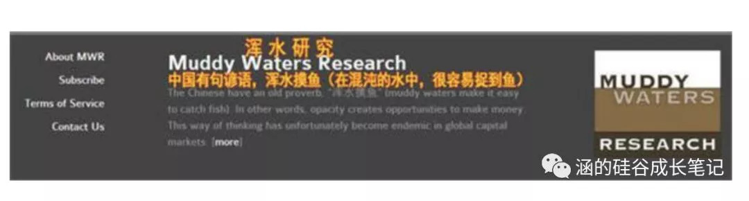 而浑水公司这个名字,其实也是来自于中文。按照他网站的介绍,“浑水”恰恰取自中国的古老谚语:浑水摸鱼。