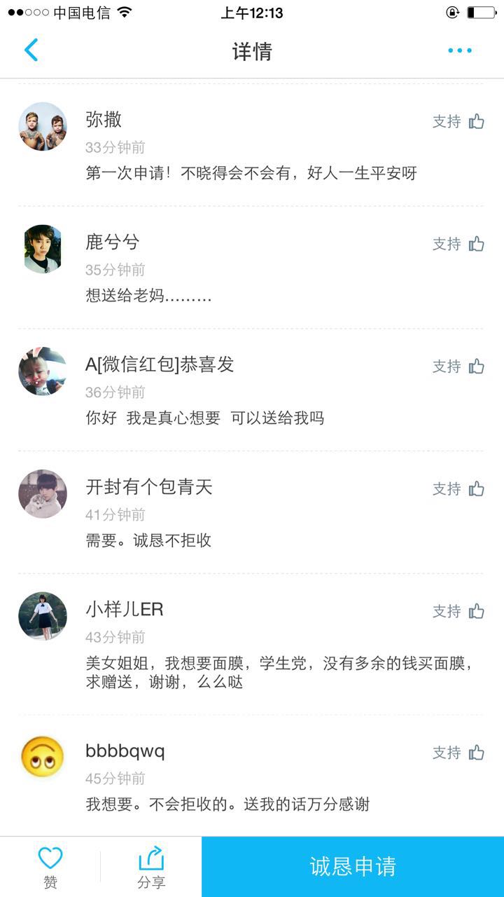 赠送人将自己想要赠送的物品拍照后发帖,有其他用户申请后,可以根据申请理由,从中选择一位自己想要赠送的对象,物流方面可以见面交易或者快递到付。