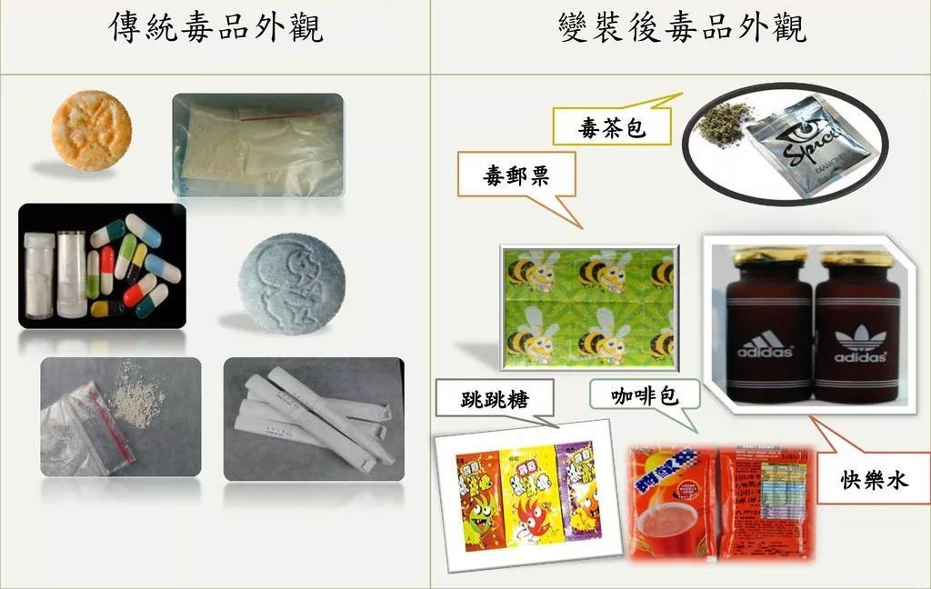 这些新型毒品容易伪装成奶茶、跳跳糖,胶囊、咖啡、茶叶等,充斥在各类舞厅、酒吧与K歌房等各大娱乐场所。