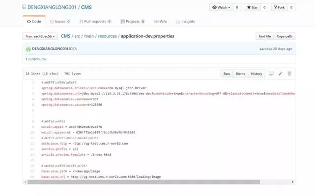 分析认为,一名Github ID为DENGXIANGLONG001的程序员(疑似华住程序员),曾在GitHub(一个面向开源及私有软件项目的托管平台)上传了一个名为CMS项目。项目的配置文件代码里包含了华住敏感的服务器及数据库信息。这些信息被黑客利用,最终被攻击导致信息泄露。