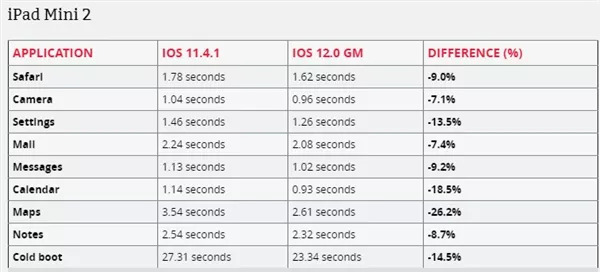 至于iPad mini 2同样集体提速,地图加载用时缩短幅度最高,为26%。
